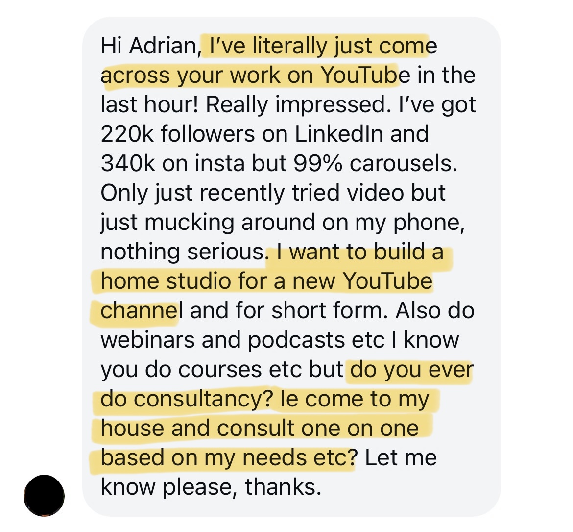 I jumped on a call with him last week, and next month Iām building his studio. Two-camera setup, desk + podcast space.
