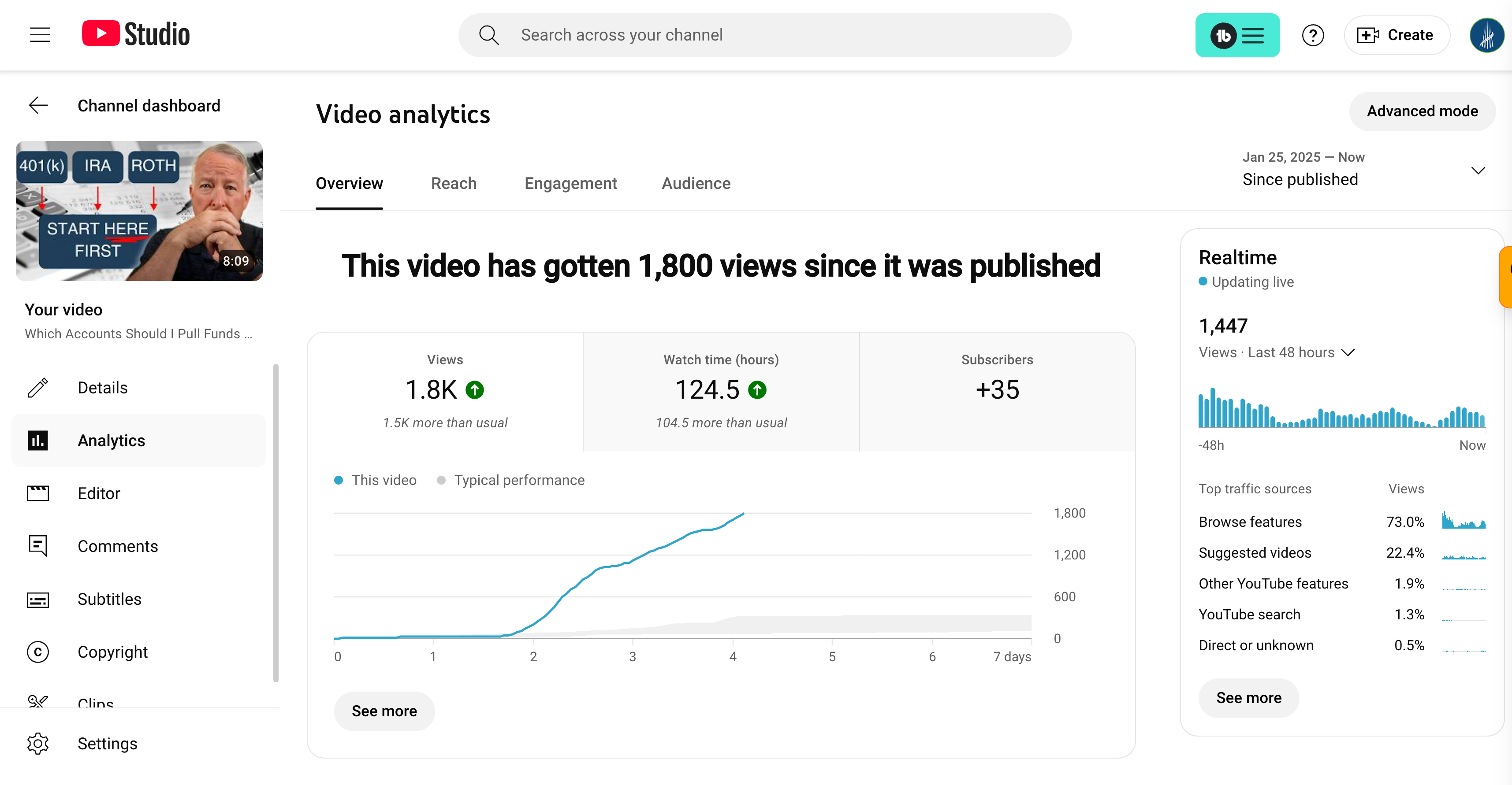 Clark is a financial adviser and has really niched down on his audience, and it's paying off. These aren't being found by 'search'. but they're being seen as suggested videos by YouTube, which means YouTube now sees Clark as an authority and is presenting him to people who have watched similar videos.