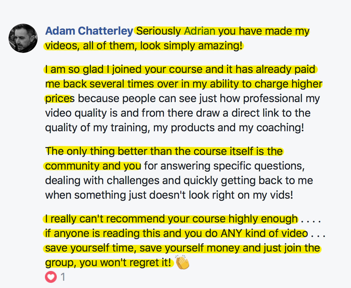 Don't take my word for it, hear what some of my students think to the Pro Video Academy...