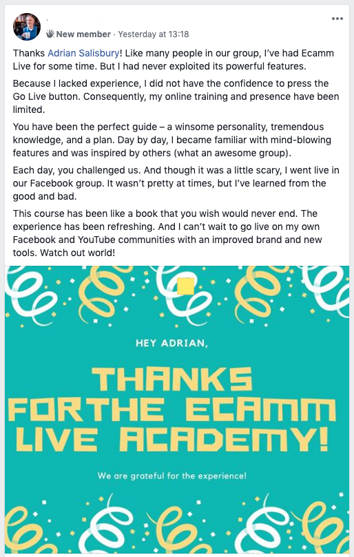 Plus, over the past few months I've had enough people reaching out to me asking for help with Ecamm Live that I decided to host this 5 day LIVE event to walk you through the software and help you get the results and feedback that I do every time I go live.